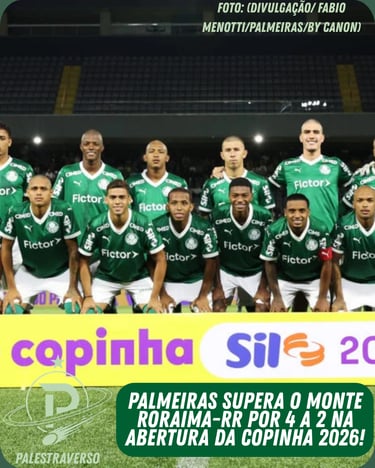 O Palmeiras iniciou sua jornada na Copa São Paulo de Futebol Júnior de 2026 com uma vitória por 4 a 2 sobre o Monte Roraima-RR, na noite desta segunda-feira (05), em Barueri