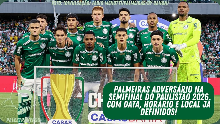 A Federação Paulista de Futebol confirmou oficialmente o adversário, a data e o horário da semifinal do Campeonato Paulista 2026. O Palmeiras, dono de uma das melhores campanhas da competição, enfrentará o São Paulo em jogo único, marcado para domingo, 1º de março, às 20h30, na Arena Crefisa Barueri.