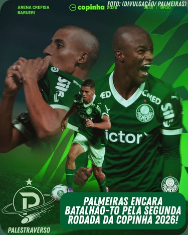 A Sociedade Esportiva Palmeiras volta a campo na noite desta quinta-feira (08) com um objetivo claro: carimbar o passaporte para a fase de mata-mata da Copa São Paulo de Futebol Júnior de 2026. Após uma estreia com vitória por 4 a 2 sobre o Monte Roraima-RR, o Verdão enfrenta o Batalhão-TO, às 19h30, na Arena Crefisa Barueri.