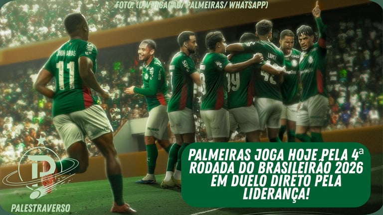 Palmeiras joga hoje pela 4ª rodada do Brasileirão 2026 em duelo direto pela liderança
