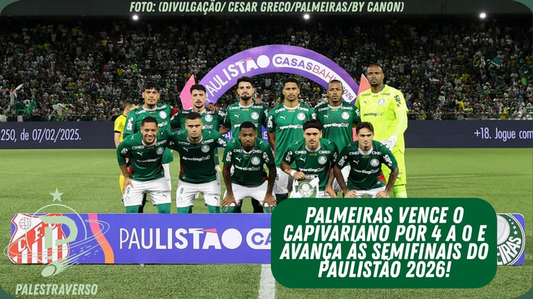 O Palmeiras confirmou seu favoritismo e garantiu vaga nas semifinais do Campeonato Paulista 2026 ao vencer o Capivariano por 4 a 0, na noite deste sábado (21), na Arena Crefisa Barueri