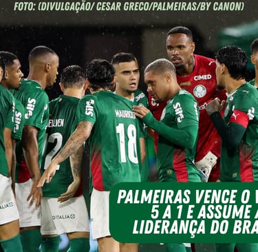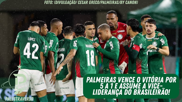 Palmeiras vence o Vitória por 5 a 1 e assume a vice-liderança do Brasileirão
